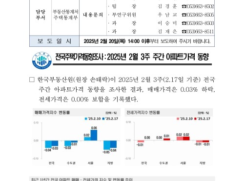 [25년2월20일] 주간아파트가격동향 (2025.02.17기준)
