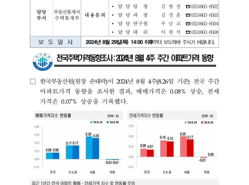 [24년8월30일] 전국 주간 아파트가격 동향 (2024.08.26기준)