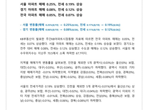 [24년8월30일] KB부동산 주간보도자료 (2024.08.26기준)