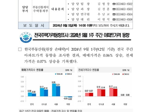 [24년9월5일] 주간아파트가격동향 (2024.09.02기준)